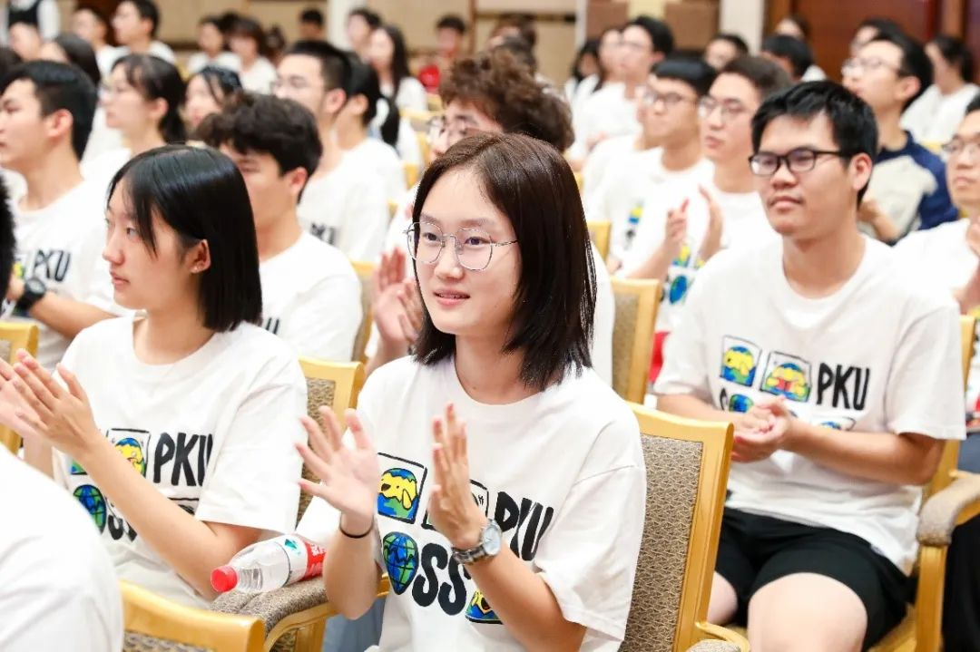 “一旦佩上北大校徽,每个人顿时便有被选择的庄严感。”与会的领导和老师们上台为新生代表佩戴北大校徽并合影,其余新生则在台下郑重地为自己佩戴上校徽。环节庄严且有仪式感,这枚校徽不仅仅代表着“北大人”的身份,也承载着地空“脚踏实地、仰望星空”的精神,承载着师长的嘱托和厚望、地空人的使命和荣光。从这一刻起,我们将共有北大地空人的身份,共享北大地空人的荣耀,共担北大地空人的责任!