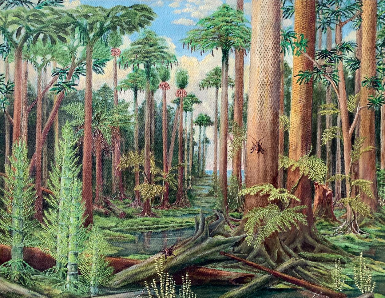 郝守刚教授在退休后,多年来坚持开展科研工作(一些研究成果于2021年获得教育部自然科学一等奖),同时还身体力行地开展各类科普活动。近日,他历时多年创作的科普著作《逝去的光影:地史时期植物景观油画系列》获得嘉奖,被评为第八届“中国科普作家协会优秀科普作品奖”科普图书特别奖(本年度仅两部著作入选)。《逝去的光影:地史时期植物景观油画系列》一书以油画形式,展示了自46 亿年前地球诞生以来,直至全新世各地史时期的陆地景观,展现了遥远、宁静、深邃的史前世界的斑斓景色。画作主要依据我国各地史时期丰富的化石资料,综合古生物学家的重要典型研究成果,以油画形式复原了各地史时期陆地景观36幅,并附有通俗易懂的文字说明,展示了漫长的前寒武纪藻菌发展时代,以及显生宙以来的地衣、苔藓、蕨类植物、裸子植物及被子植物发展时代,直至人类栽培作物景观的出现。