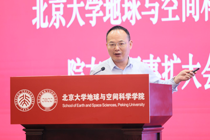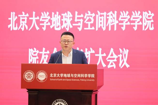 近几年取得的进展,重点提到了全国重点实验室获批、承办国际地球科学奥林匹克竞赛、成立地外样品研究中心等在学院发展、学科建设上具有重要意义的几个事件。他指出,学院的成绩离不开校友的支持,期望未来能与广大校友在学科建设、人才培养、社会服务等方面深化合作,号召广大院友们与学院一同为培养新一代地球科学人才贡献力量。