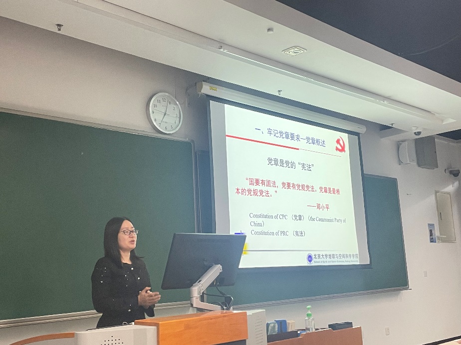 王一涵老师开头便向同学们提出了为何入党,党是什么样的组织的问题,引导大家主动思考个人入党动机以及入党条件,并结合党章内容给出明确答案,强调了5项入党条件与党员应尽的8条义务。接下来王一涵老师结合习近平总书记考察北大时讲话的精神和要求,对同学们给予了“勤学、修德、明辨、笃实、爱国、励志、求真、力行”的十六字期望。