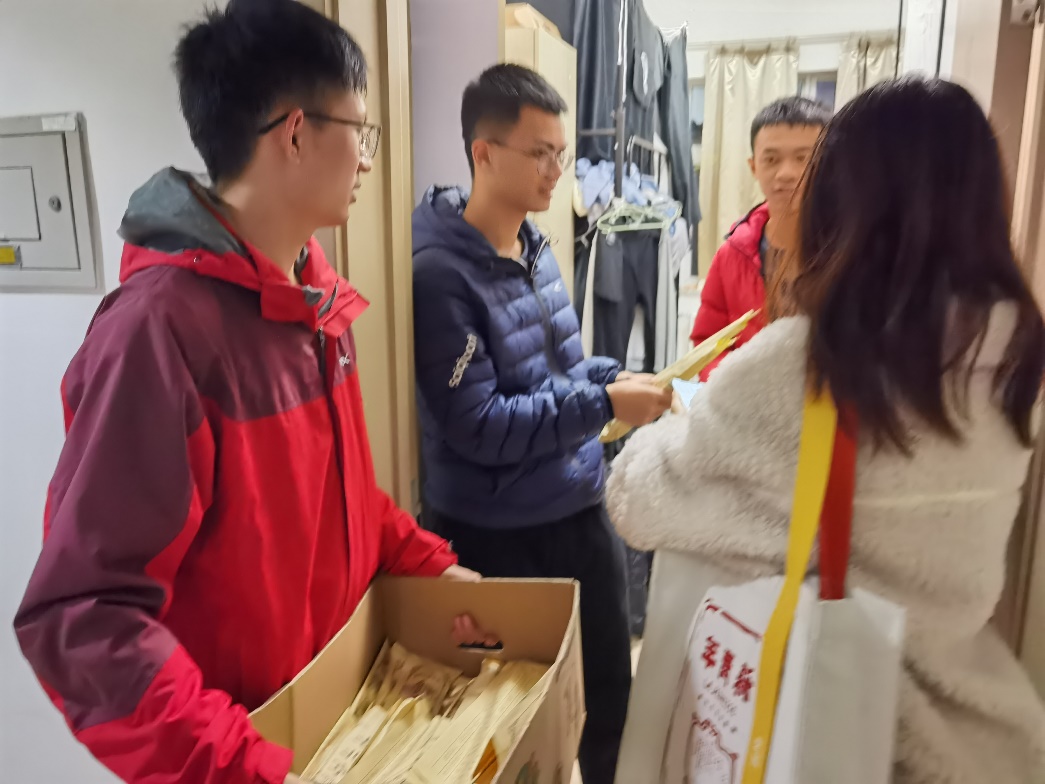 老师们对本科生宿舍逐个进行走访慰问,给每位同学都分发了糖葫芦,并与大家进行了深入交流讨论,询问了同学们期中考试、本科生科研和近期生活状态等基本情况,并对同学的问题和诉求进行了认真地回答。