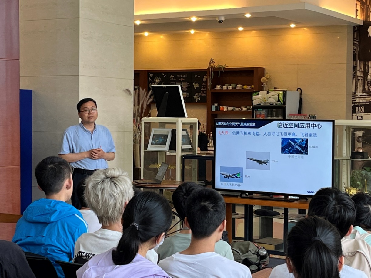 空间中心闫召爱老师与张龙龙老师分别为同学们带来了科普讲座“临近空间探测与预报技术研究”与“航天器空间环境效应研究与应用”。