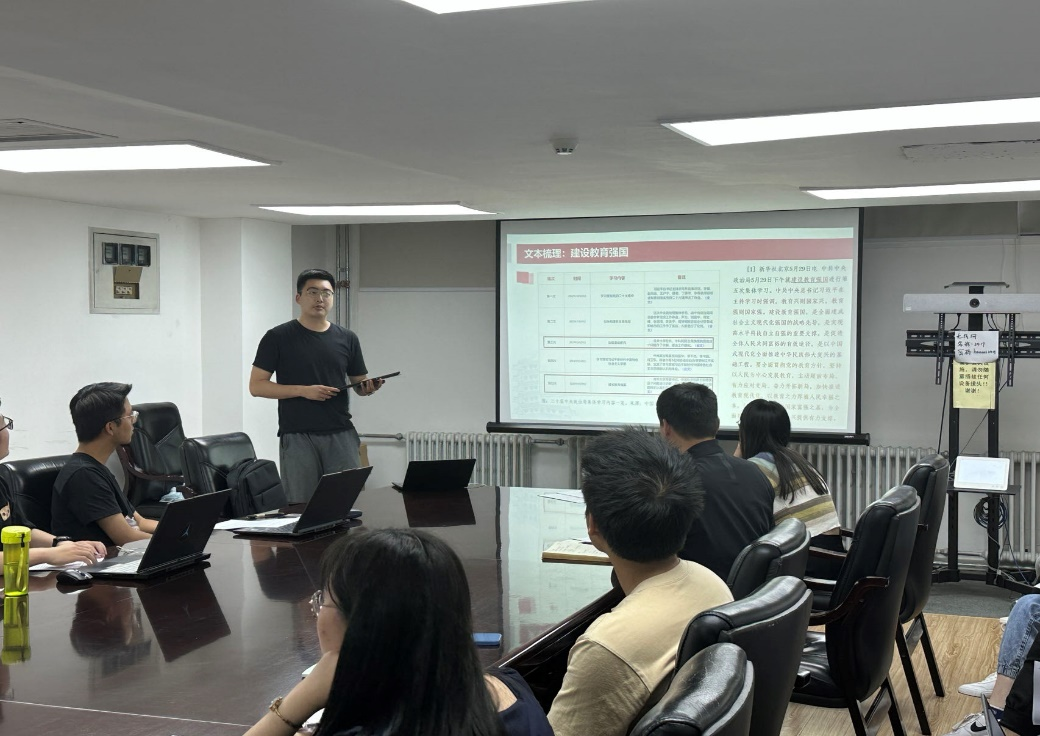 会上,空间物理2021级博士生陈麒安进行领学,为骨干们介绍中国特色社会主义教育强国事业的历史性成就和格局性变化,结合党的二十大报告文本、重要讲话文本和社会热点分析为什么要建设教育强国,逐段梳理重要讲话中总书记对建设什么样的教育强国、如何建设教育强国做出的谋划部署,逐字逐句领悟“我们要建设的教育强国,是中国特色社会主义教育强国。”“培养什么人、怎样培养人、为谁培养人是教育的根本问题,也是建设教育强国的核心课题。”“建设教育强国是全党全社会的共同任务。”等内容,并结合文本分享了建设教育强国对高校党支部工作理念、具体举措上提出的要求和带来的启发。