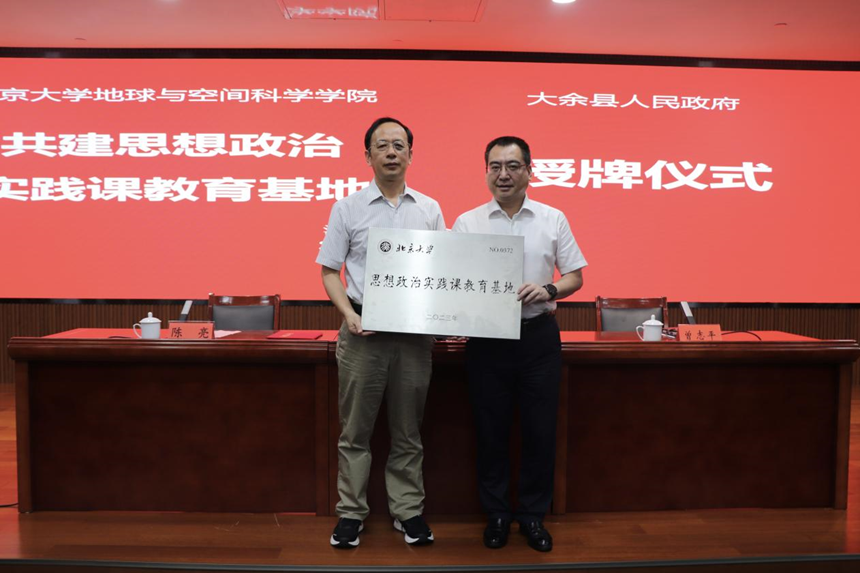 与大余县人民政府签约,协议共建“思想政治实践课教育基地”,并为基地授牌。