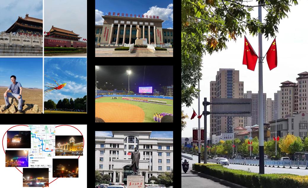 周启明分享自己通过从北大燕园骑行至天安门为祖国庆生的过程,沿途的喜庆路灯、笑语欢声让他感受到心潮澎湃。彭静萱前往杭州观看亚运会中国对阵日本的垒球决赛,现场照片记录下了运动员奋发拼搏的昂扬姿态。段蕙质记录了内蒙古街道上迎风飘扬的红旗,花团锦簇与红色海洋中洋溢着喜悦与自豪。曹博男参观张家口市展览馆,陈列的展品、图片记录了新时代十年历史性成就、历史性变革,近年来科技事业的飞速发展让他倍感振奋。徐航在国庆佳节游览祖国大好河山,拍下了北京天安门、内蒙乌兰察布等地的美丽景色,尤其令他难忘的是政府大楼前的毛主席雕像,开国领袖的丰功伟绩激励他在新征程中不忘初心、奋力前进。