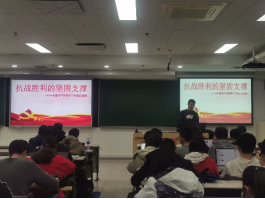 第六组结合寒假的调研活动中与抗日战争相关的场所各位积极分子开展的参观学习,以“抗战胜利的坚固支撑——中国共产党领导下的敌后战场”为主题,从背景、主要战役和评价三个角度进行深入分析。从全局的角度带领大家回顾了中国共产党带领人民群众在艰苦卓绝的时期与侵略者奋力抗争的历史,展示了敌后战场为抗日战争的最终胜利做出的巨大贡献。