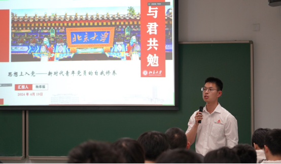 团委博士生讲师团杨弟福作主题为“思想上入党——新时代青年党员的自我修养”的报告,支部的百余名青年党团员在二教505和线上分会场两个会场围绕这一主题进行了深入的学习研讨交流。史前生命与环境研究生党支部书记郑澳男主持活动。