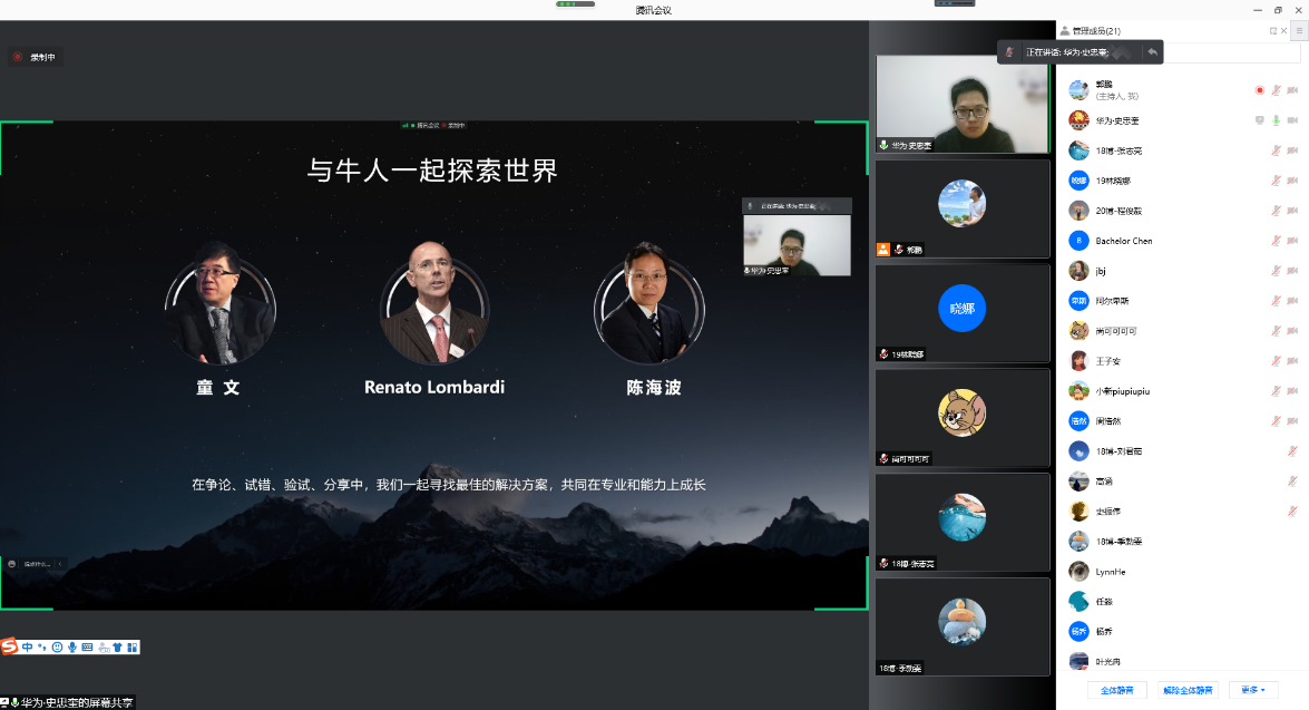 郭鹏介绍完本次活动背景后,史忠奎师兄首先通过一段视频,对华为所涉及的业务领域、公司发展情况等进行了展示。他结合自身经历体会,从工作节奏与氛围、成长机会与平台等方面介绍了在华为工作的相关情况,并聚焦华为所涉及本专业的业务范围,以及遥感所专业特点、优势等,和同学们深入探讨了未来就业的可能方向;陈工师兄结合两年多的工作历程分享了在电科院工作的体验、工作内容以及自己选择央企的心路历程;周浩然师兄对空天院七室的工作氛围和相关工作机会进行了介绍,鼓励同学们不必过于焦虑,但仍要对未来进行合理地规划并尽早开始准备。在提问交流环节中,三位师兄也就同学们提出的关于应聘能力要求、工作节奏强度、工作选择建议等方面进行了深入的解析和充分的沟通。