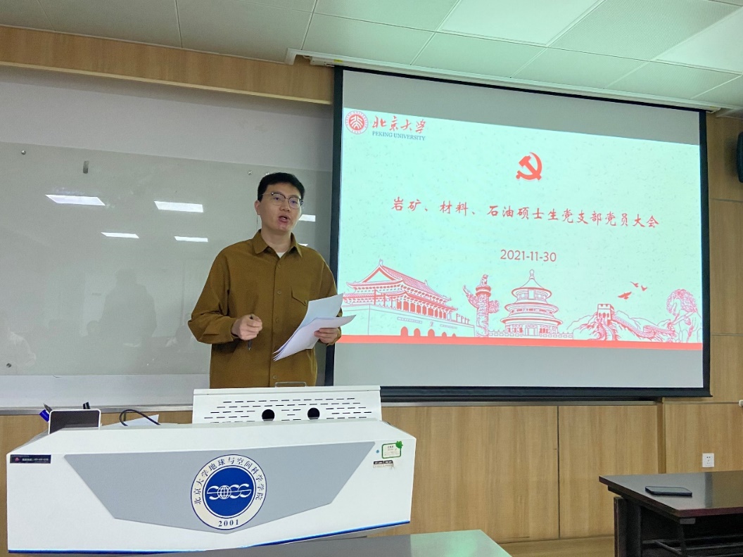 岩矿、材料、石油硕士生党支部在逸夫二楼3331教室开展“过好政治生日,牢记初心使命”主题党日活动。活动由党支部书记王利杰主持。