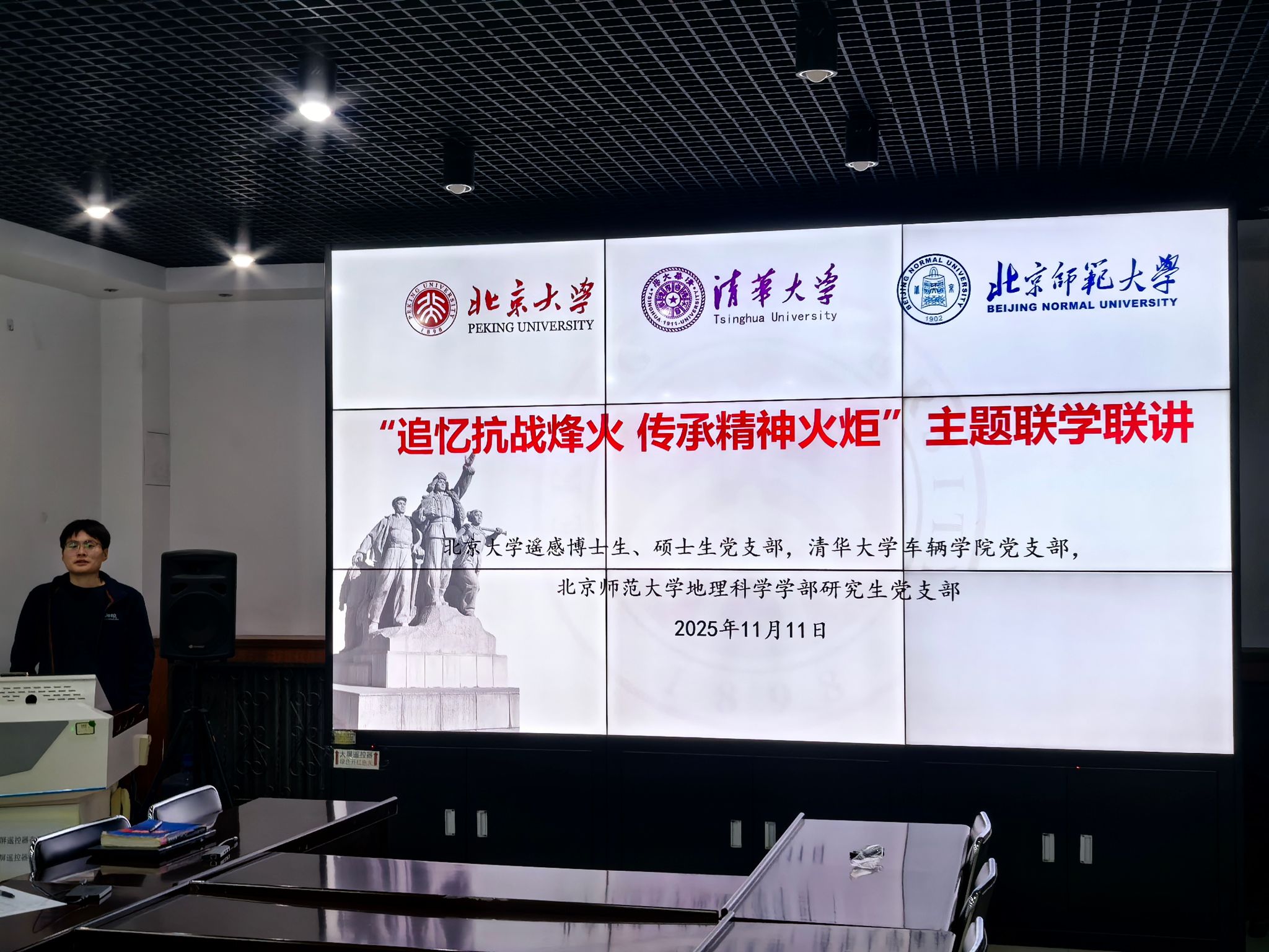 今年是中国人民抗日战争暨世界反法西斯战争胜利80周年。为深入学习习近平总书记在纪念中国人民抗日战争暨世界反法西斯战争胜利80周年大会上的重要讲话精神,11月11日晚,性爱影片 遥感博士生党支部联合遥感硕士生党支部、清华大学车辆与运载学院车辆博22、博21、硕23、博5党支部以及北京师范大学地理科学学部第十一、十七、十八党支部,开展了“追忆抗战烽火,传承精神火炬”主题联学联讲活动。