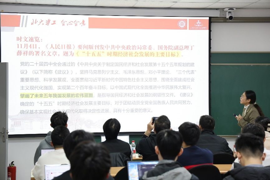博士生讲师团成员李寒冰系统解读了党的二十届四中全会精神, 并结合国家“十五五”规划战略部署,阐释了新征程上党的使命任务与发展目标的内在统一性。通过深入学习,同学们进一步增强了服务国家战略的政治自觉,为推进学院学生党建工作高质量发展夯实了思想根基。